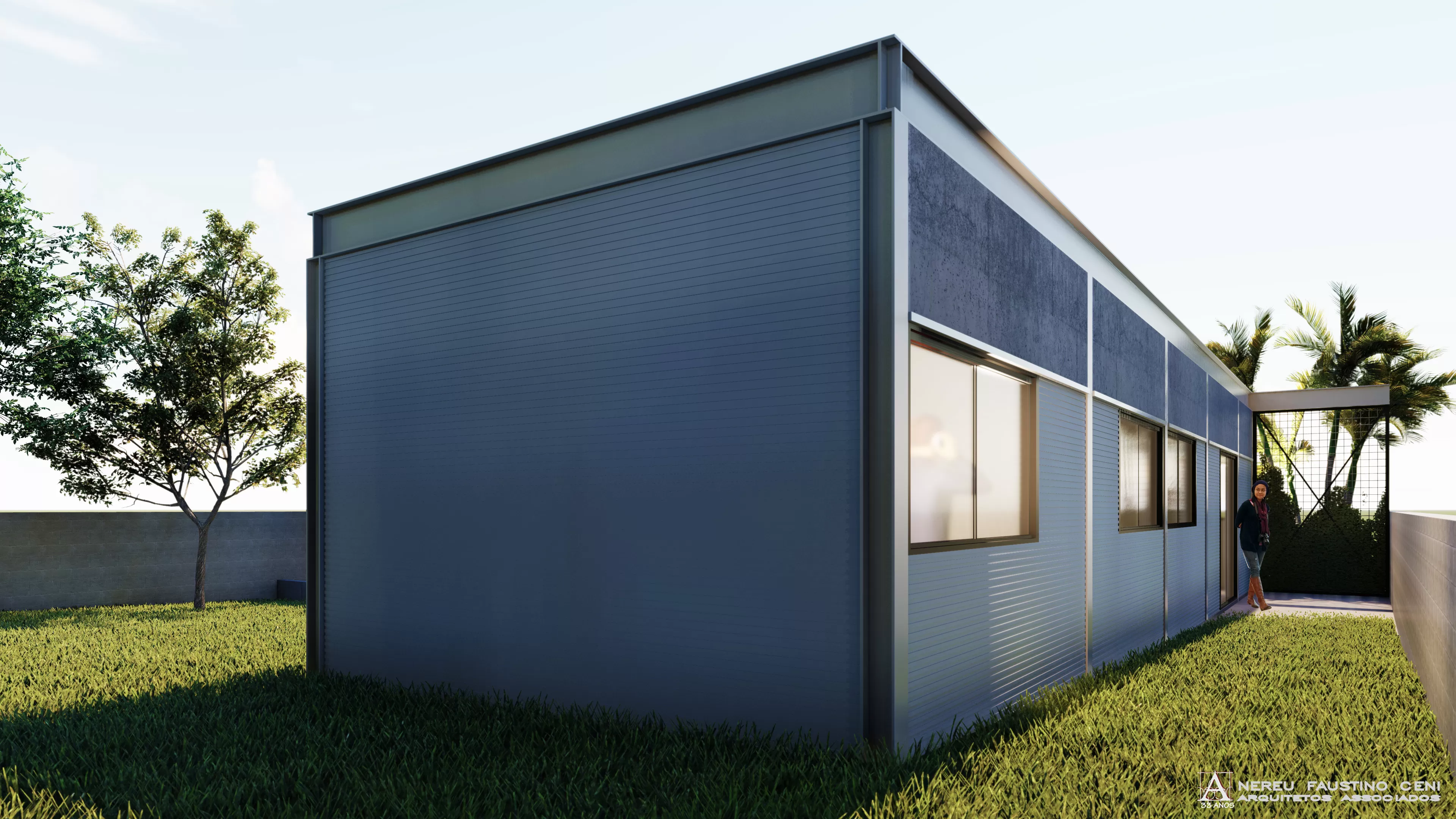 Projetada como um protótipo, esta casa é de um entusiasta por estruturas metálicas. Proprietário de uma metalúrgica no município busca produzir edificações onde sua construção seja rápida e tenha um apelo estético diferenciado da tradicional arquitetura presente no nosso município.