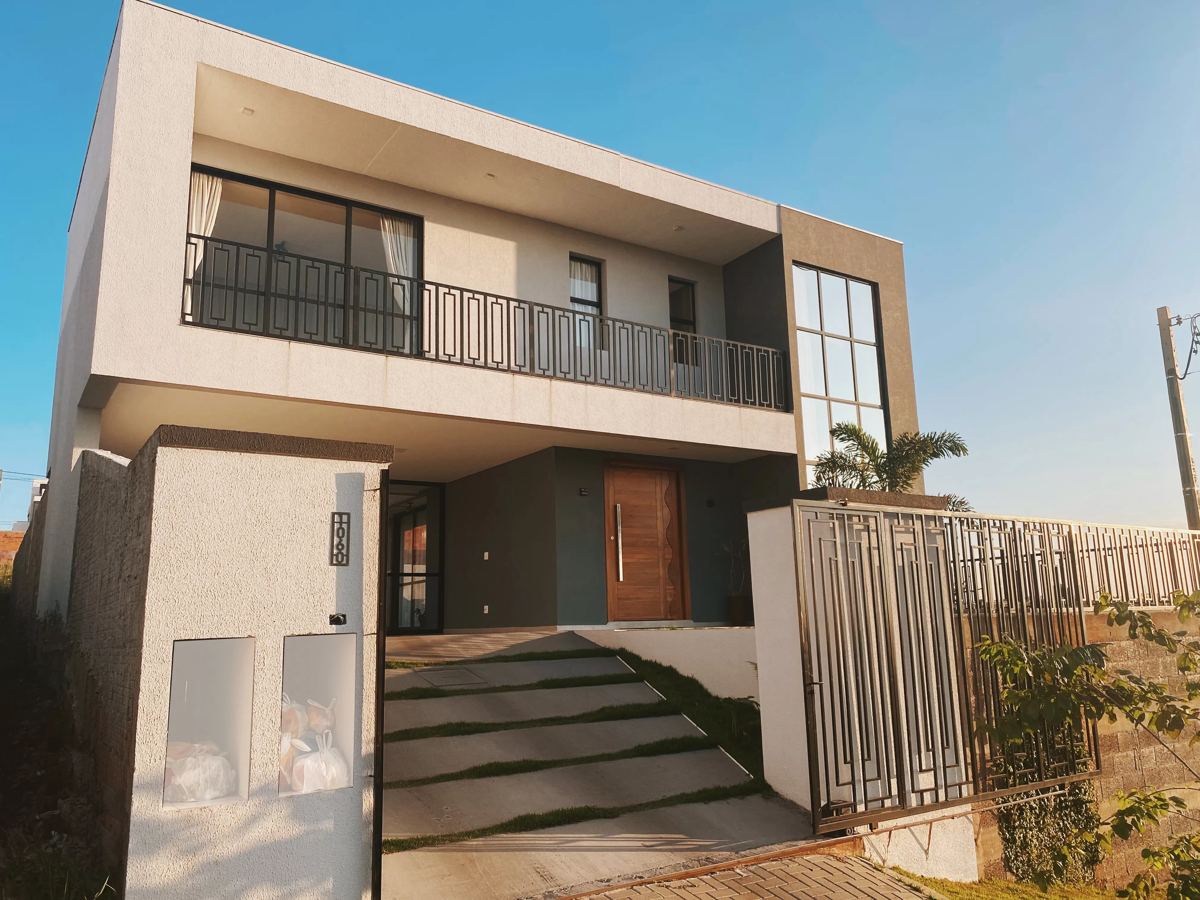 Localizada em um terreno com face norte, e uma vista privilegiada, optou-se por aumentar o nível da residência em relação com a rua, com esse nível mais alto os proprietários tem uma visão ampla do horizonte.