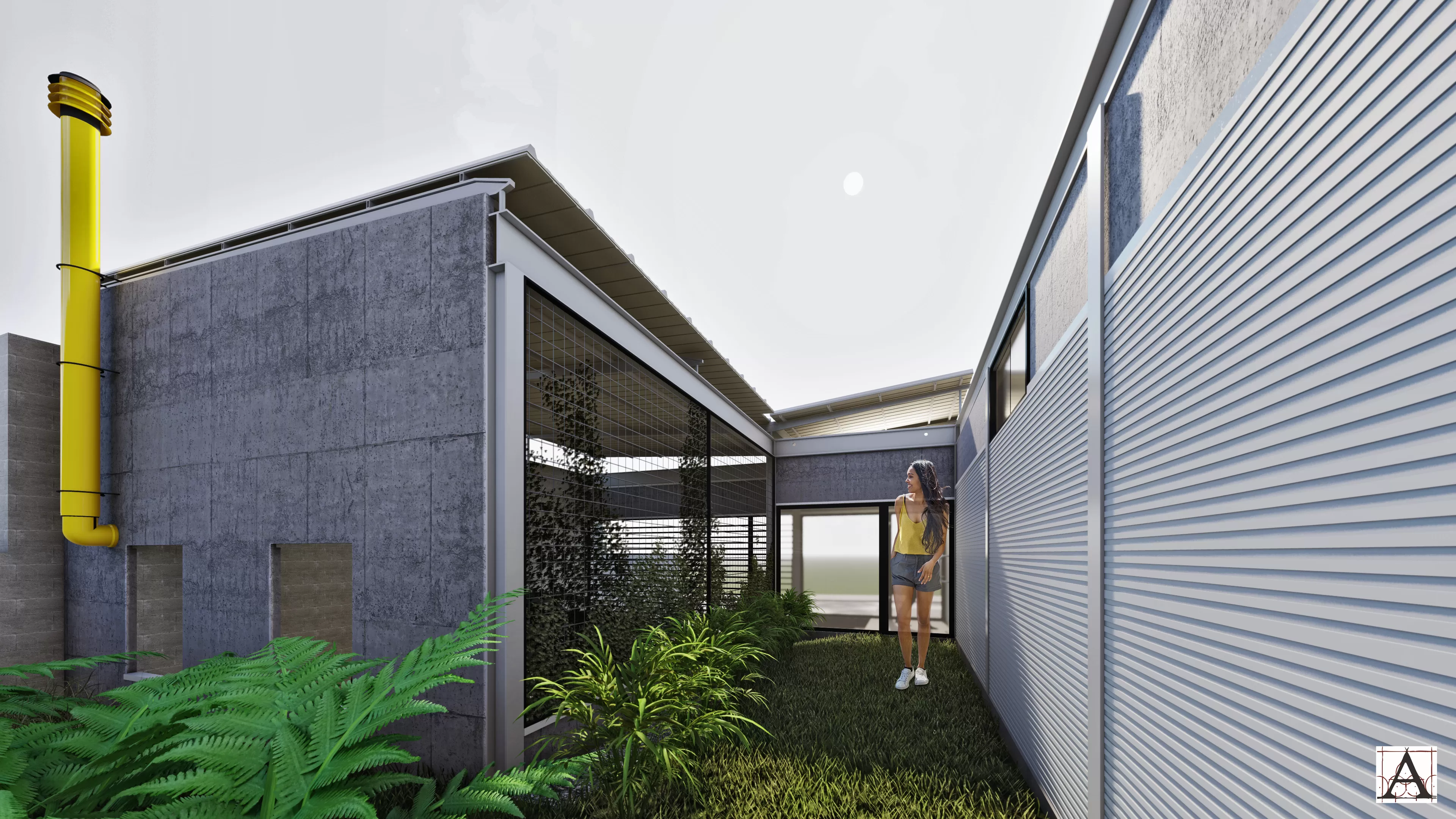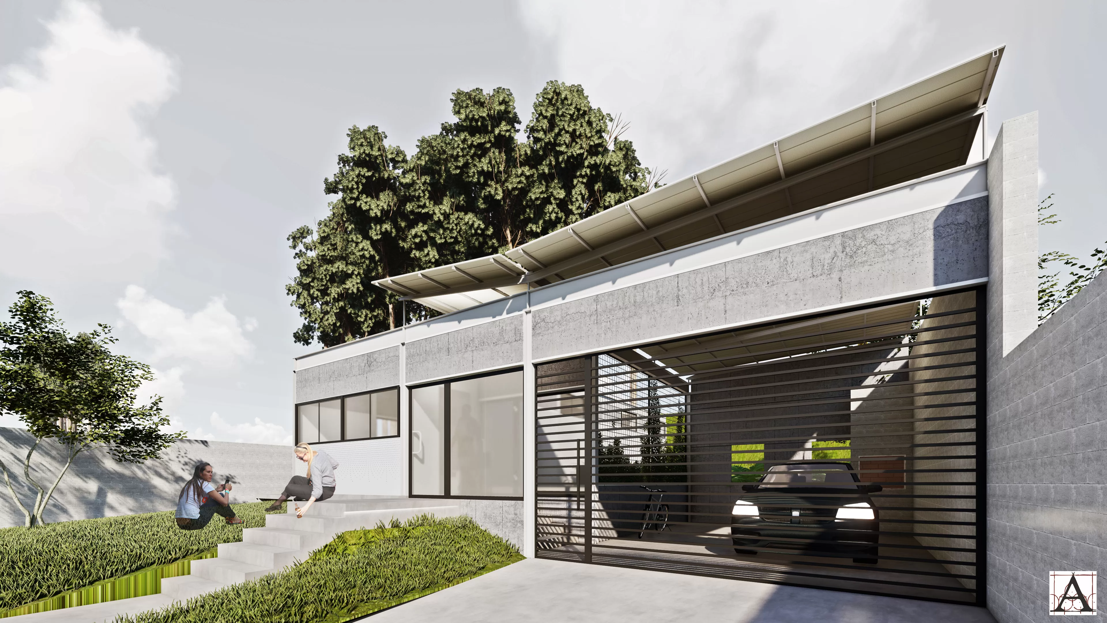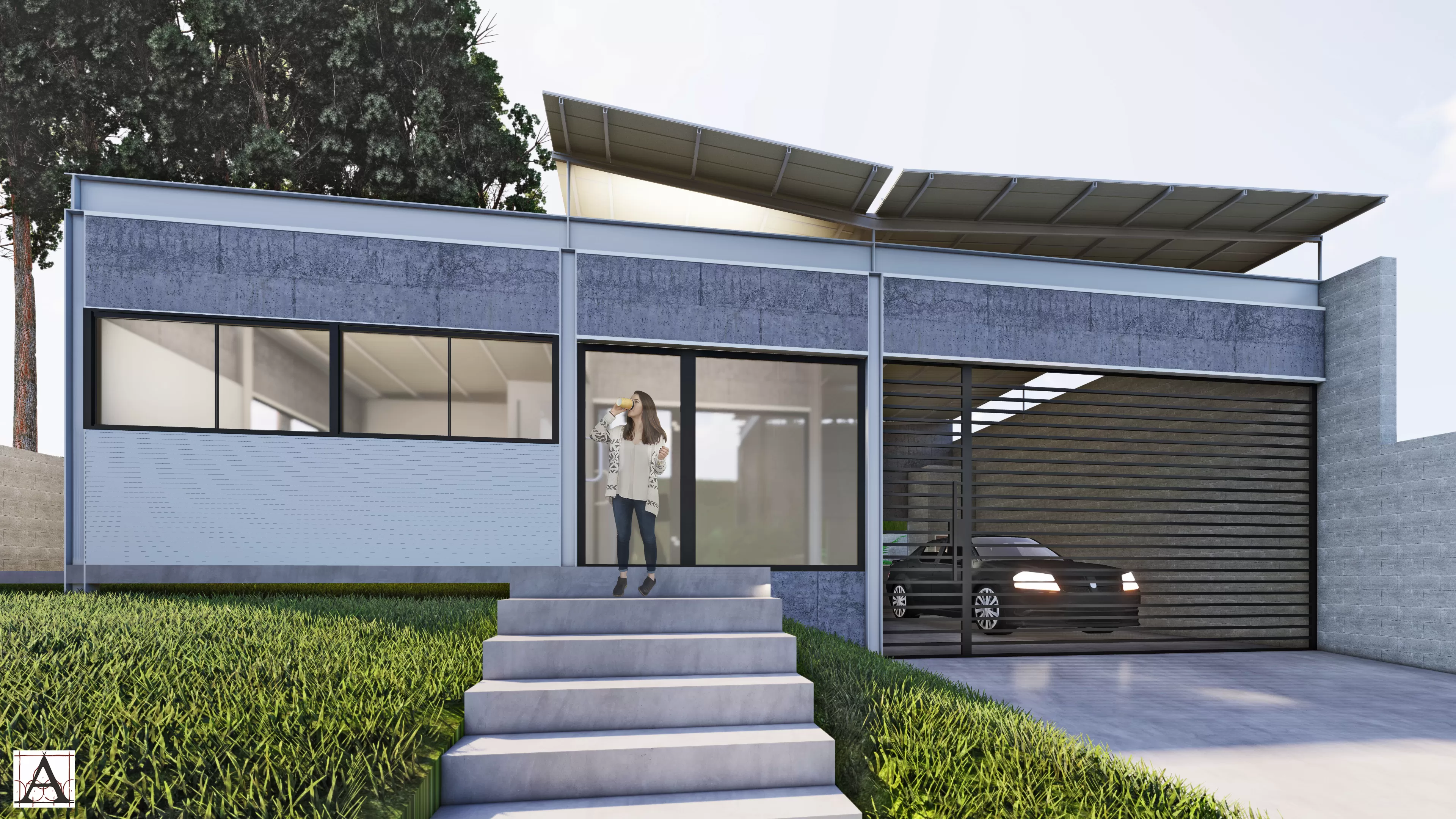 Projetada como um protótipo, esta casa é de um entusiasta por estruturas metálicas. Proprietário de uma metalúrgica no município busca produzir edificações onde sua construção seja rápida e tenha um apelo estético diferenciado da tradicional arquitetura presente no nosso município.