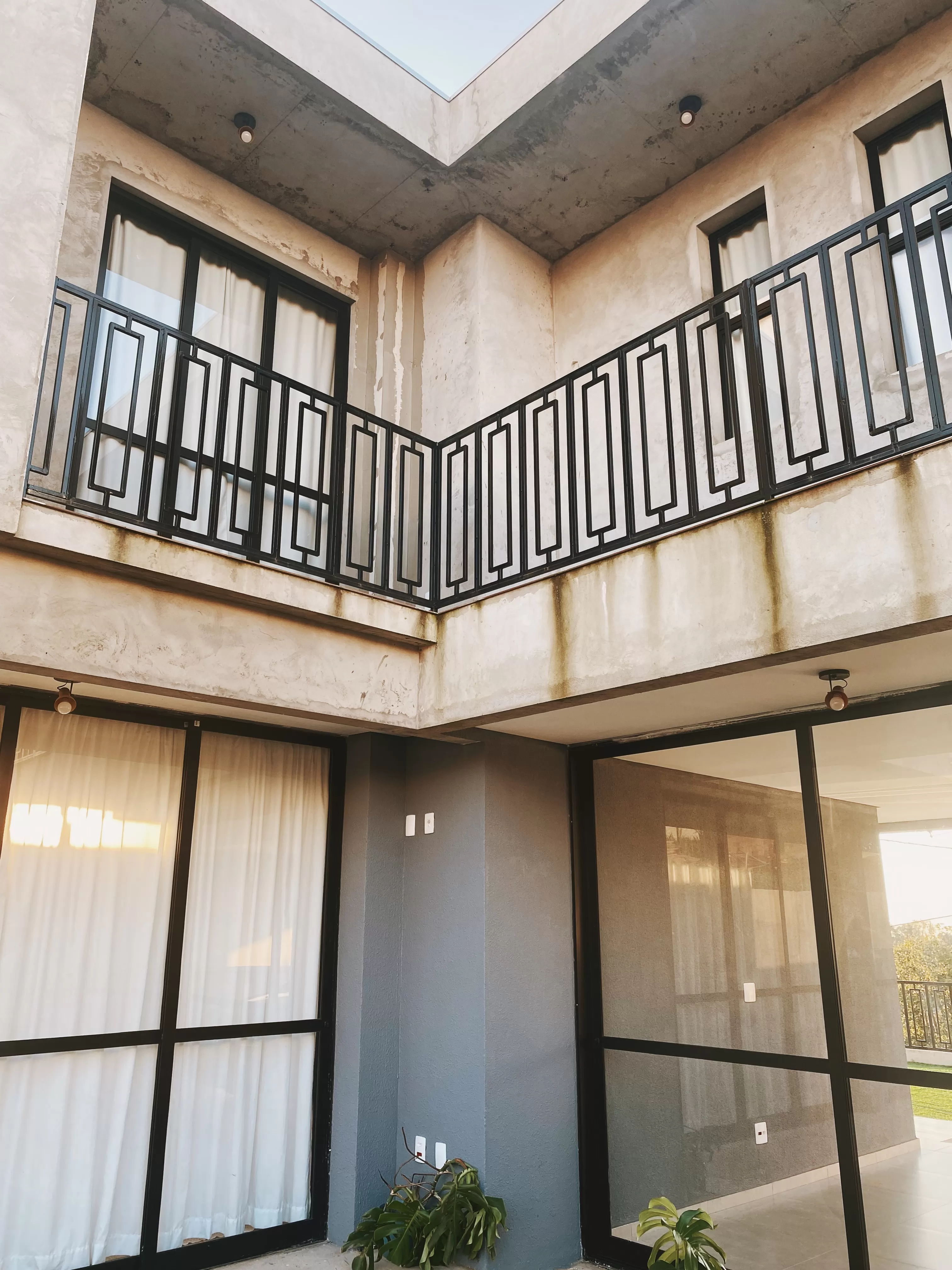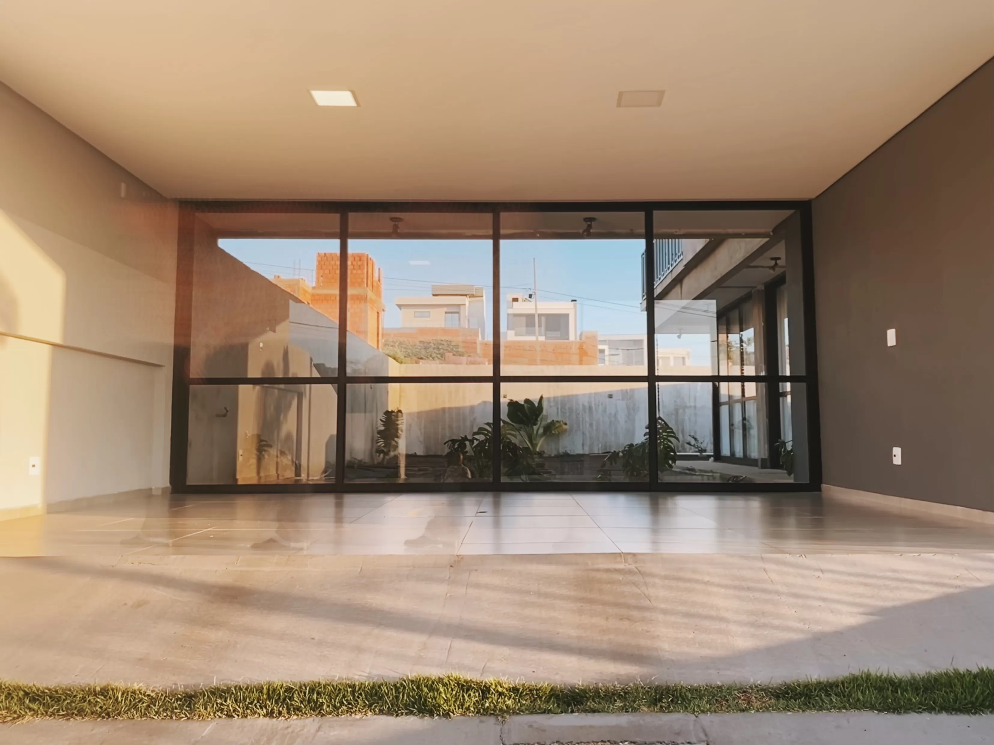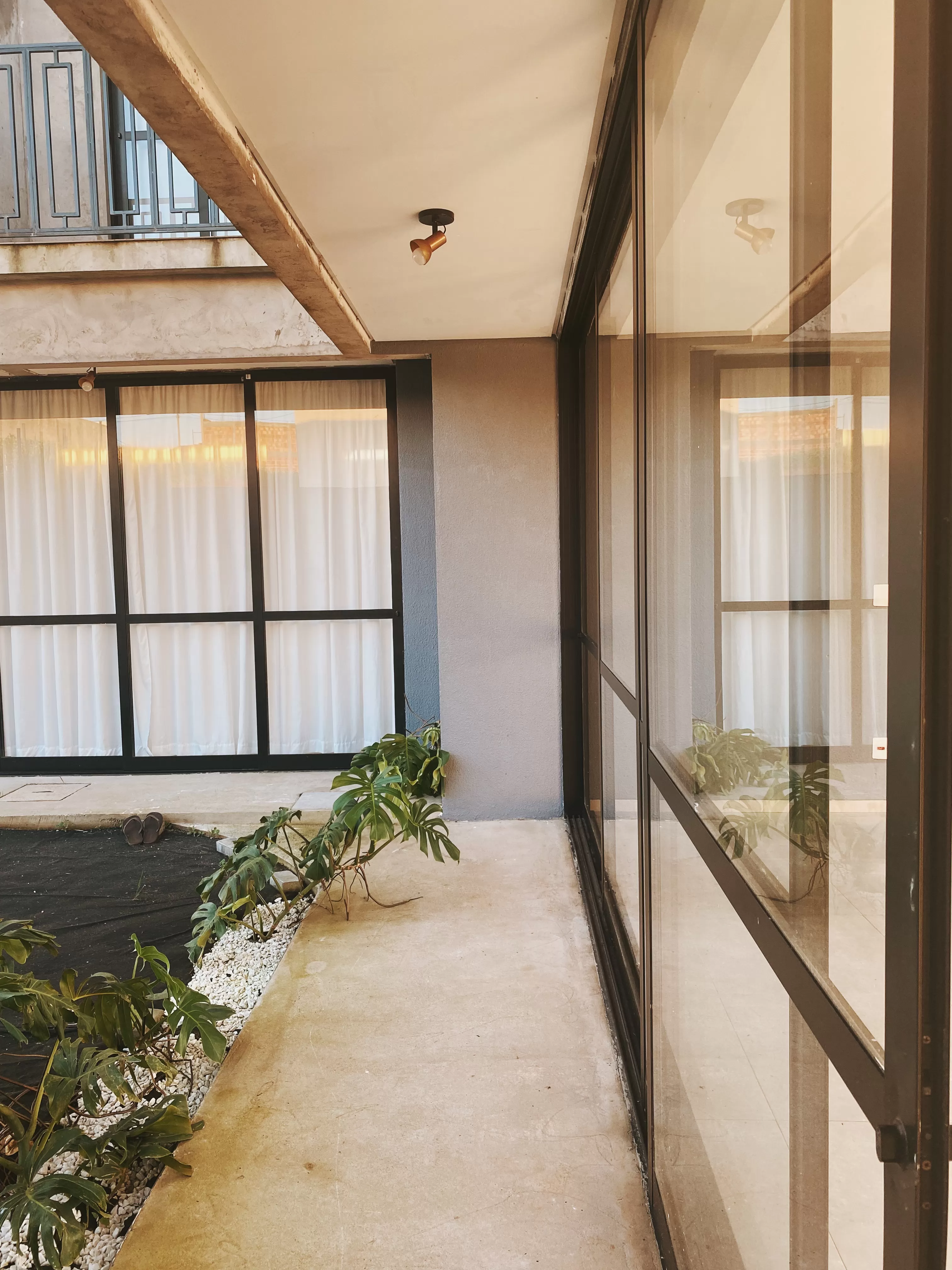 Sendo assim o jardim de inverno foi uma solução adotada para trazer mais luz natural deixando-a distribuir-se pela cozinha e a sala de estar, além de deixar a casa mais agradável nos dias mais quentes, fazendo com que o ar circule livremente. Desenvolvendo com isso uma linguagem de projeto que maximize o uso da luz natural, da ventilação e dos espaços verdes acessíveis dentro da casa. Uma parede de vidro transpassa para o 2 pavimento trazendo a luz e a ventilação para o corredor de acesso aos dormitórios.