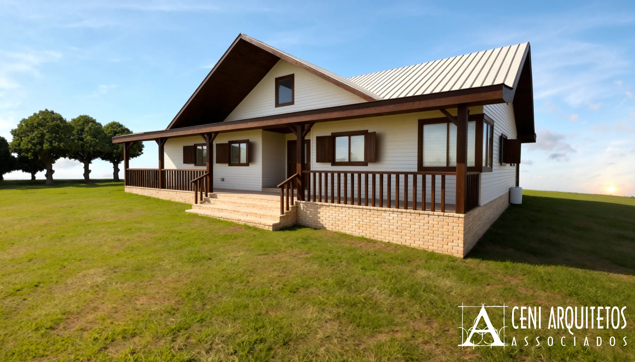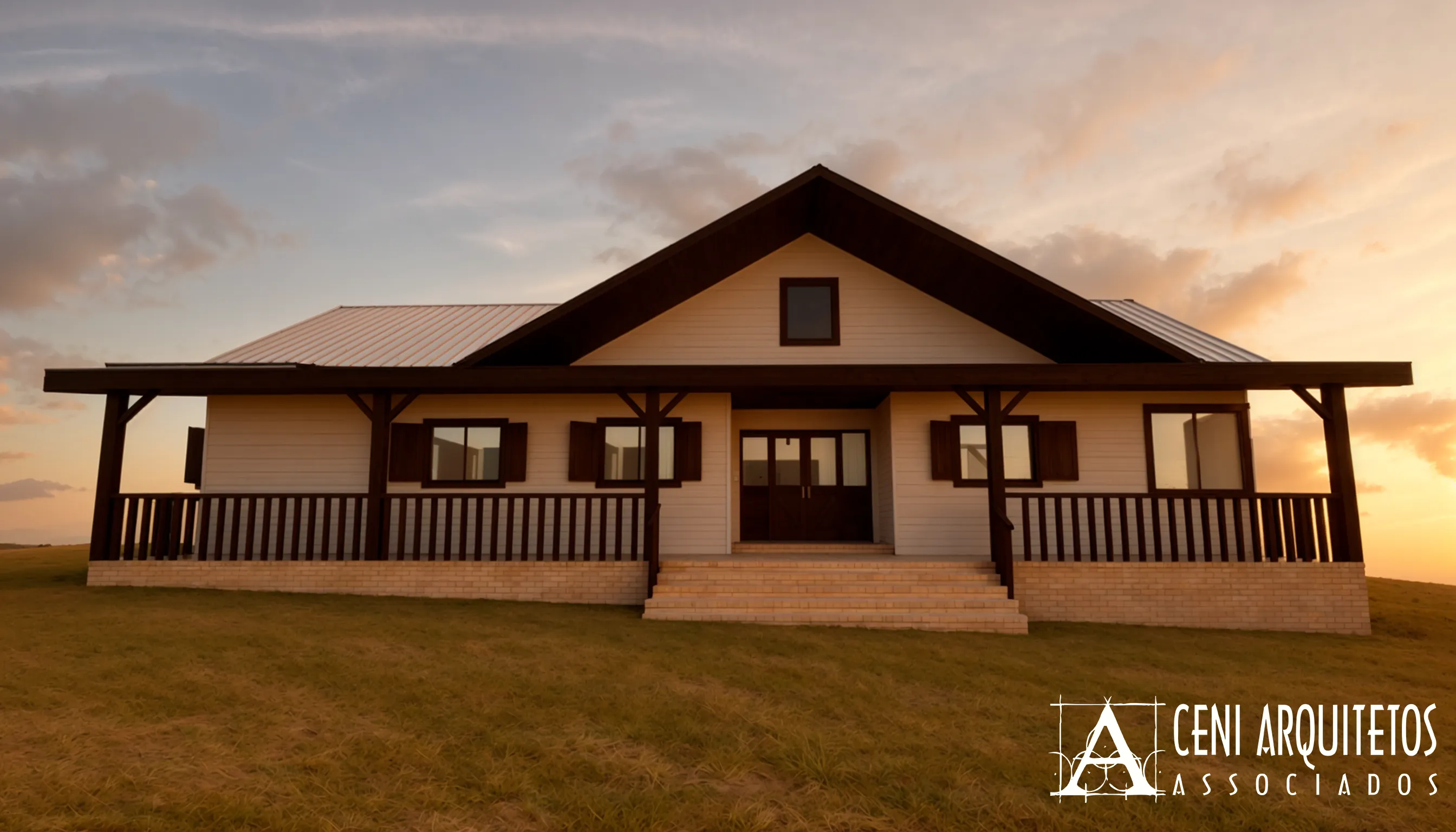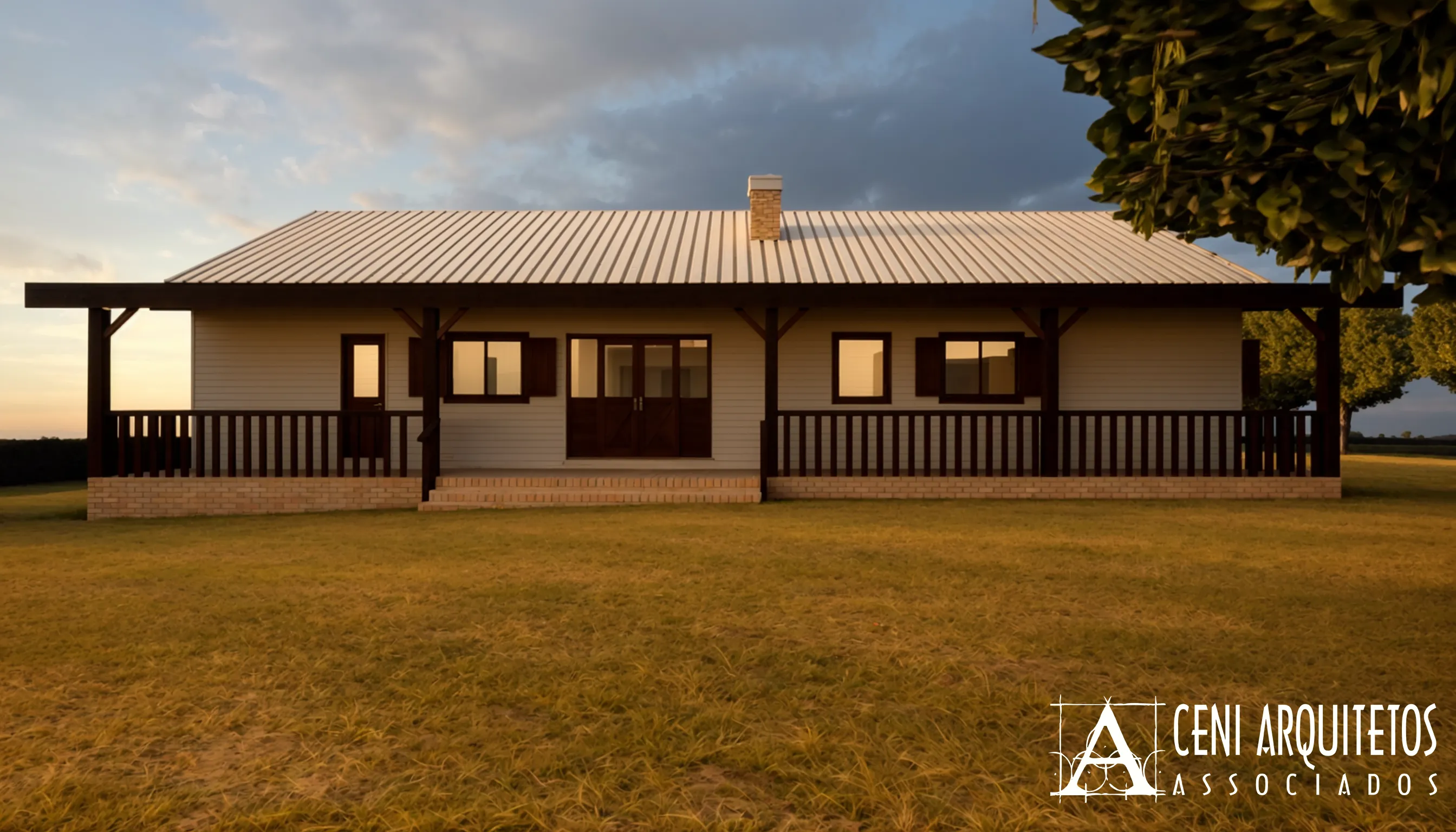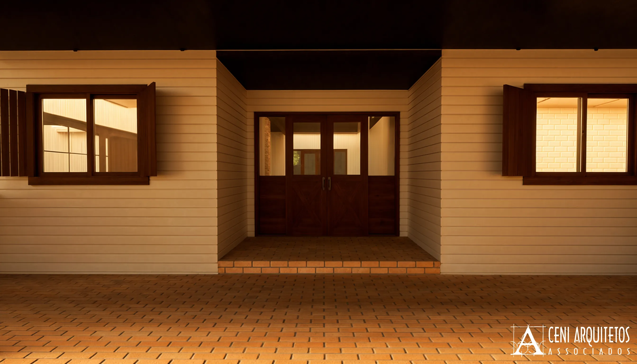 Projetada para valorizar simplicidade, aconchego e contato com a natureza, esta residência térrea combina base em alvenaria com fechamento externo em tábuas de madeira encaixadas, criando um visual rústico. A planta organiza de forma clara as áreas social e íntima, conectadas por um estar reservado no corredor dos quartos, formando um espaço que também funciona como brinquedoteca para os três filhos do casal.