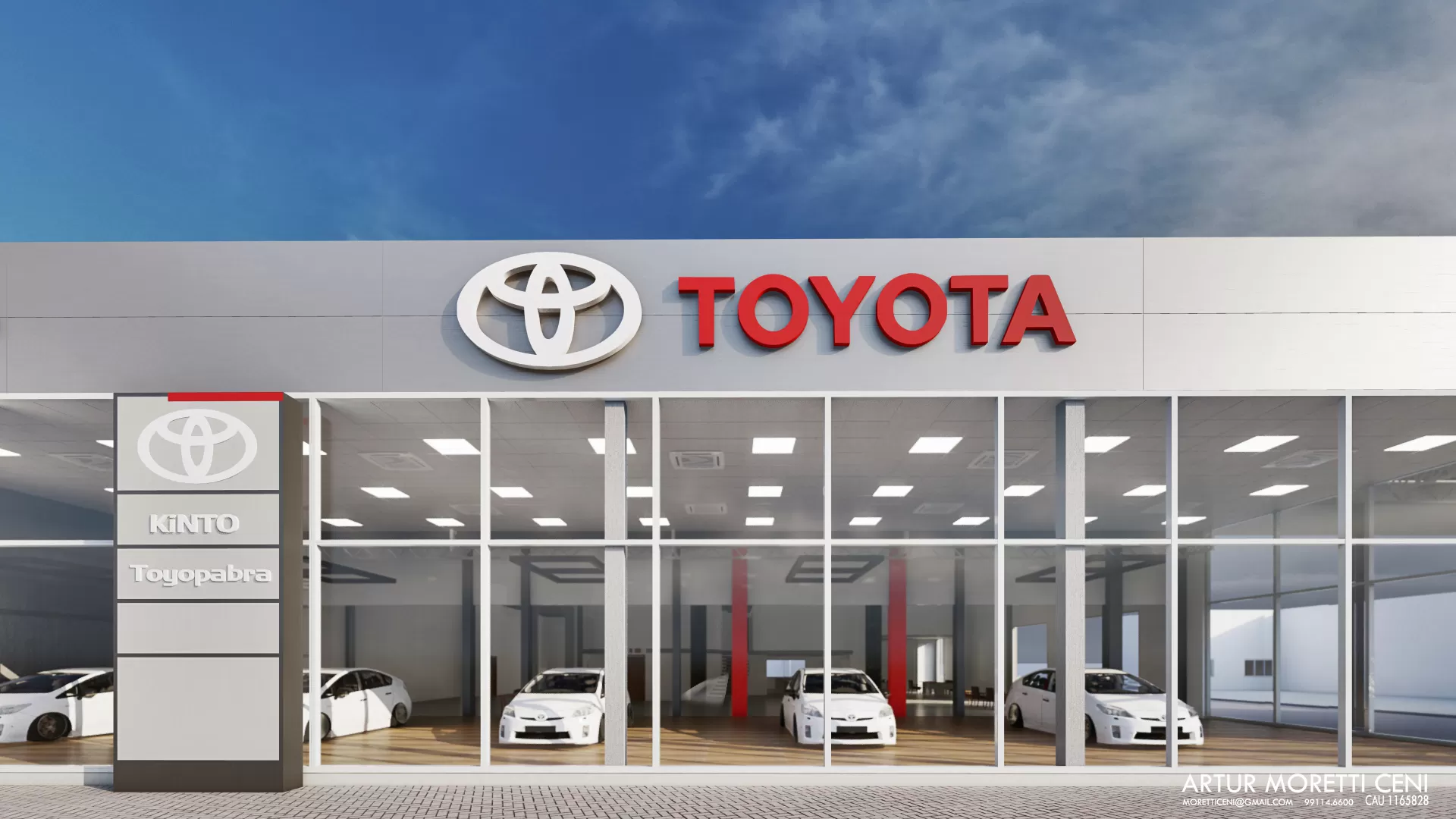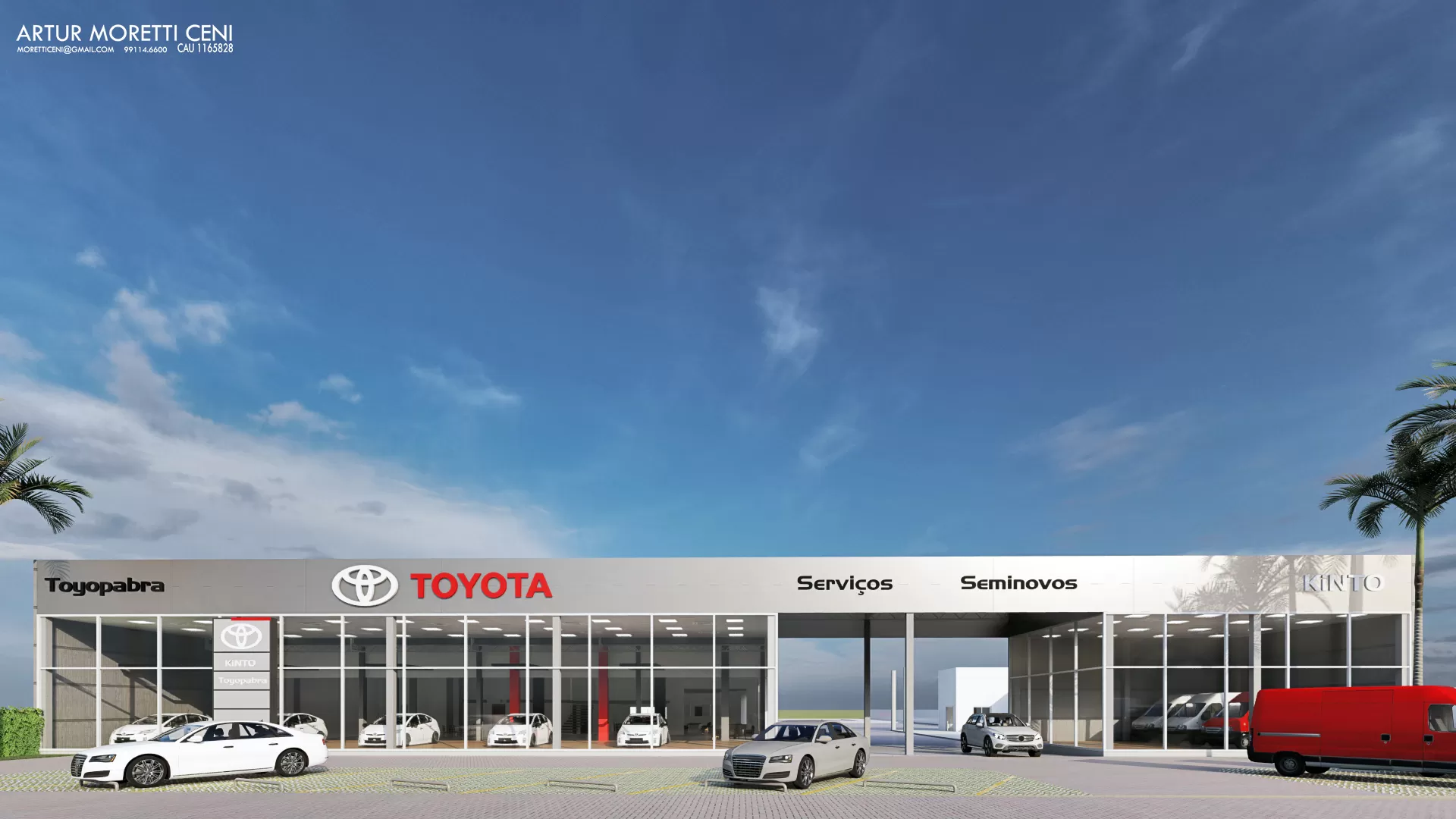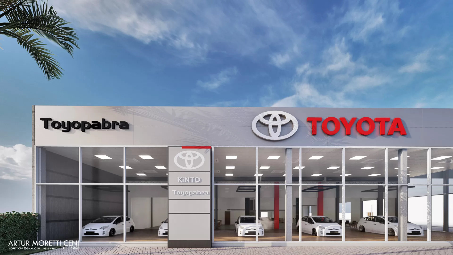 A Toyopabra é uma concessionária de automóveis referência na região que está localizada nas margens da BR-158 a muitos anos, com a alteração do recuo mínimo permitido pelas leis municipais nosso escritório foi procurado para realizar a ampliação e readequação da fachada.